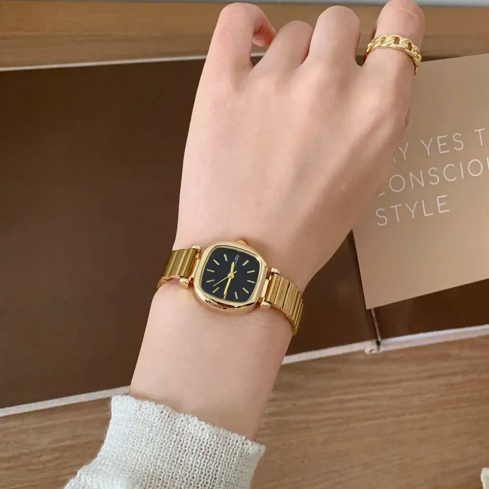 ساعة نسائية فاخرة بسوار فولاذ مقاوم للصدأ