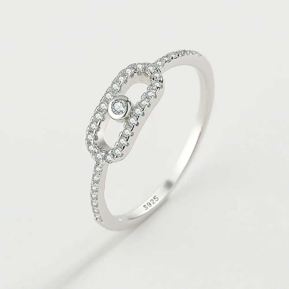 خاتم نسائي هندسي فاخر من فضة إسترليني